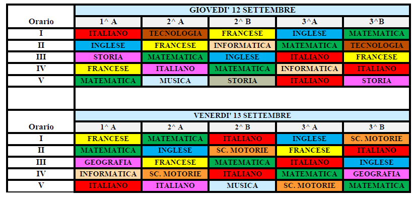 Di seguito l’orario provvisorio per la Scuola Secondaria di I Grado per i giorni 12 e 13 settembre 2024: